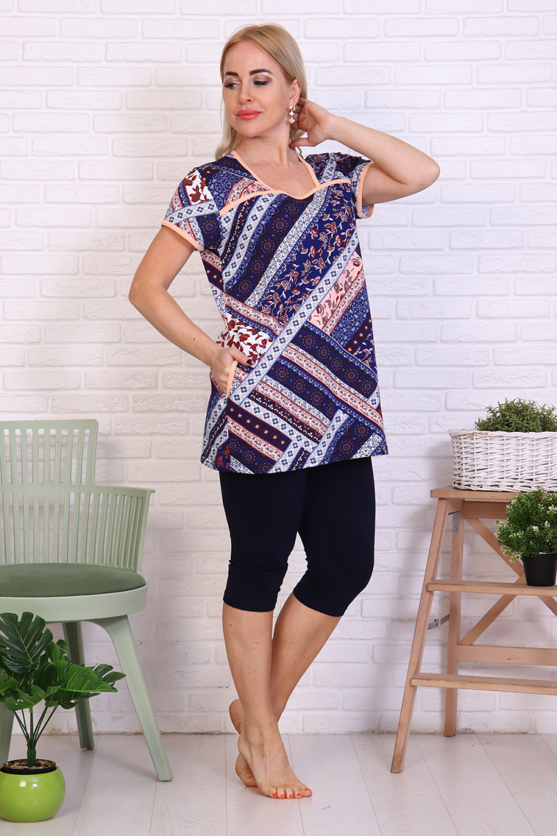 Костюм для женщин любого возраста. Актуален как для дома, сада, в любое время года. Кофточка с окантовкой по горловине и кокетке. На полочке карман. Бриджи из ткани кулирка с лайкрой, очень долго носятся, не меняют форму и цвет. Костюмчик выглядит оригинально на любой фигуре.